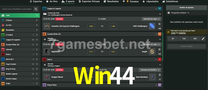 A aposta Win44 oferece aos jogadores a experiência mais conveniente de apostas em eSports!